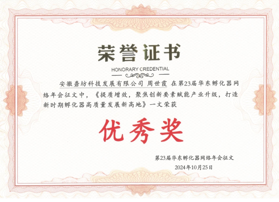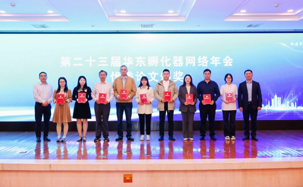 为展现华东各地科技双创孵化载体建设与发展的新风采,进一步展示孵化成果、分享孵化经验、促进资源共享,大会围绕本届年会主题“构建创孵新生态,培育新质生产力”开展论文征集,园区投稿的《提质增效,聚焦创新要素赋能产业升级,打造新时期孵化器高质量发展新高地》一文获得优秀奖,并举行颁奖仪式。